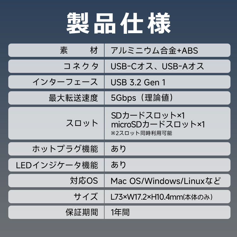 | スロット | SDカードスロット×1,microSDカードスロット×1 ※2スロット同時利用可能 |