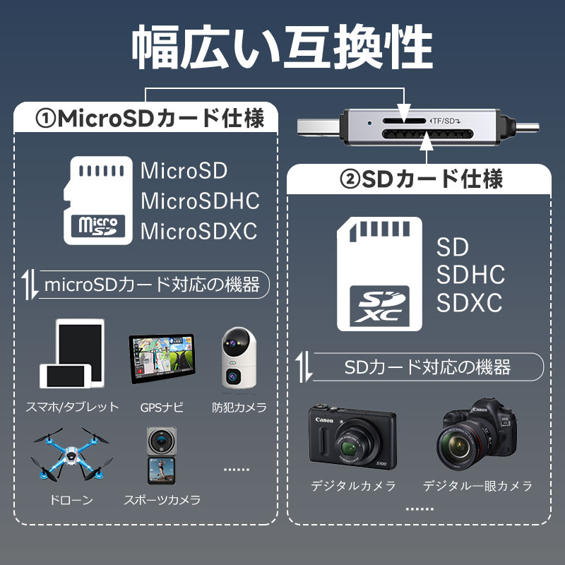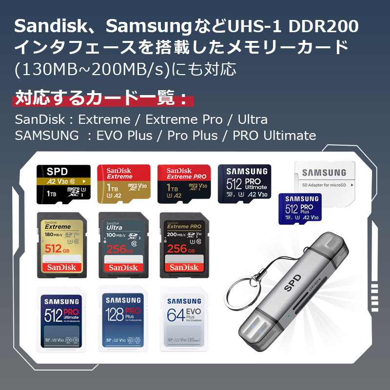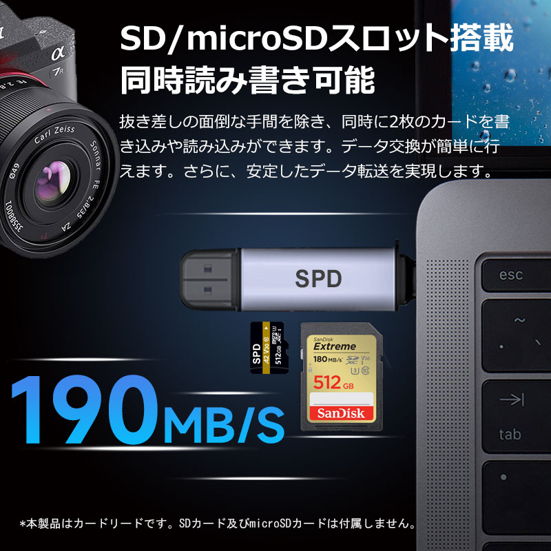 2枚カード同時に読み書き 高速データ転送 最大転送速度 幅広い対応 優れた放熱性 LEDインジケータ付き 即座に使用でき 高性能チップ ヒューズ機能 独特なデザイン 完璧なデザイン |